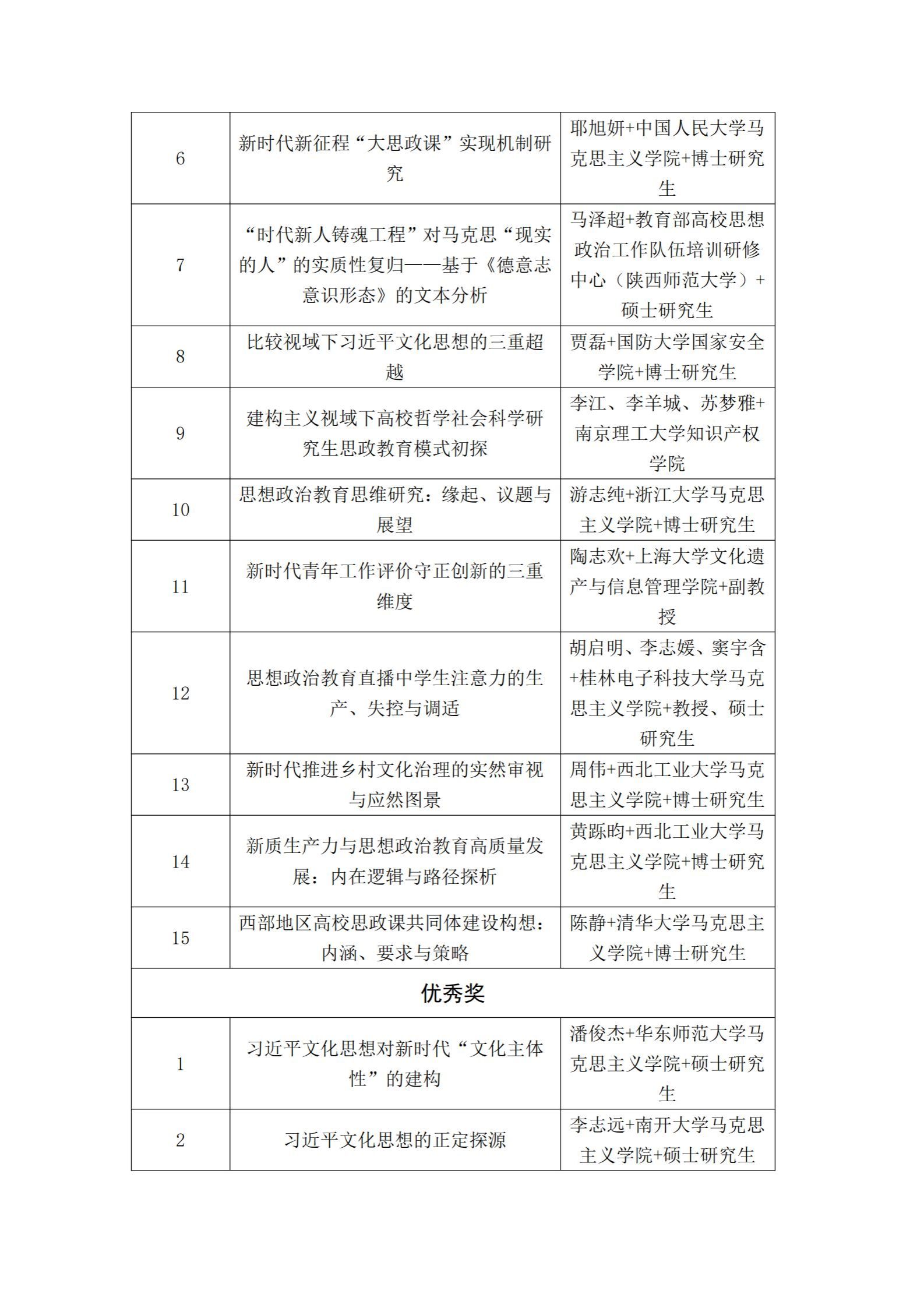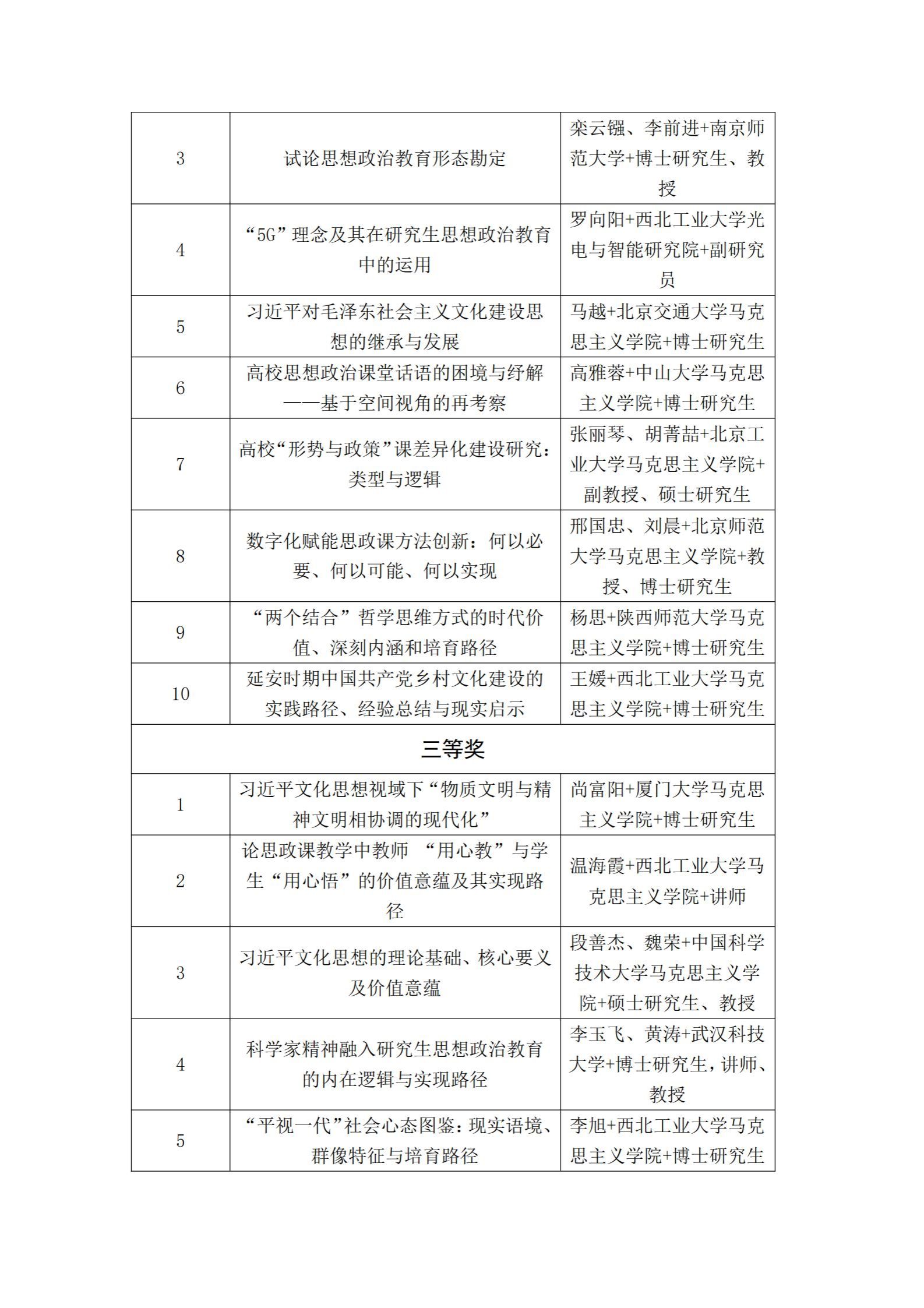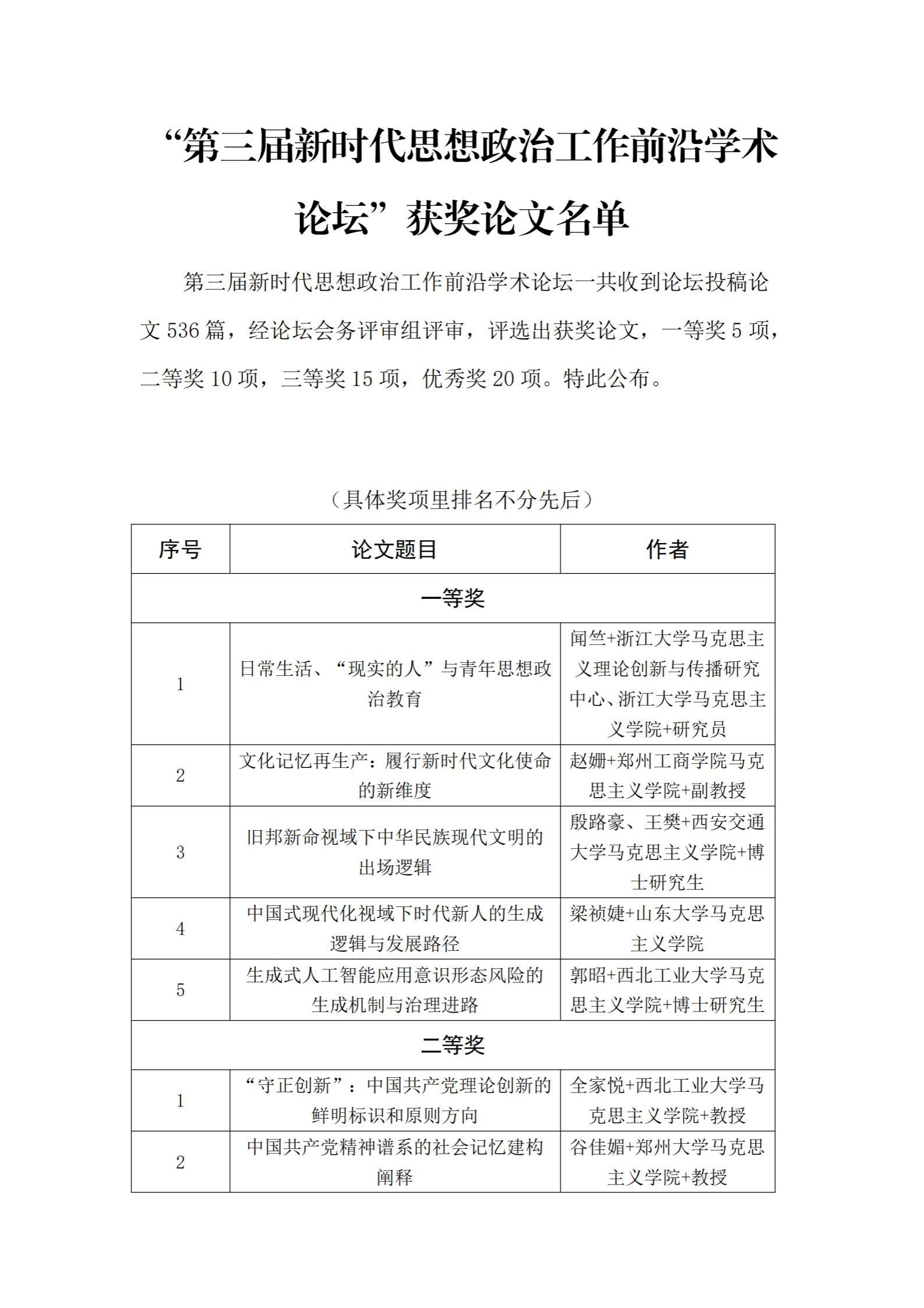 “第三届新时代思想政治工作前沿学术论坛”获奖论文名单